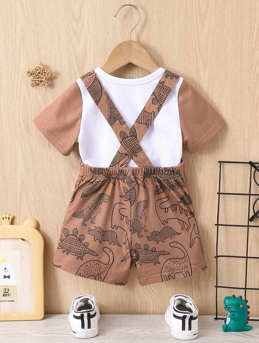 Baby Boy Dianosaur Print Bow Front Shirt & Pinafore Shorts
