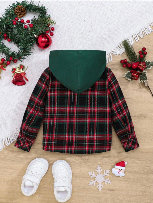 Baby Boy Plaid Print Hooded Shirt Without Tee