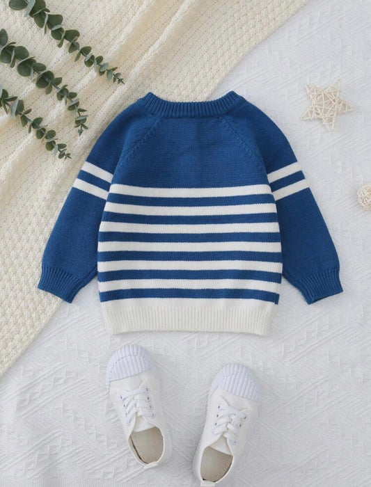 Baby Boy Striped Pattern Raglan Sleeve Half Button Sweater