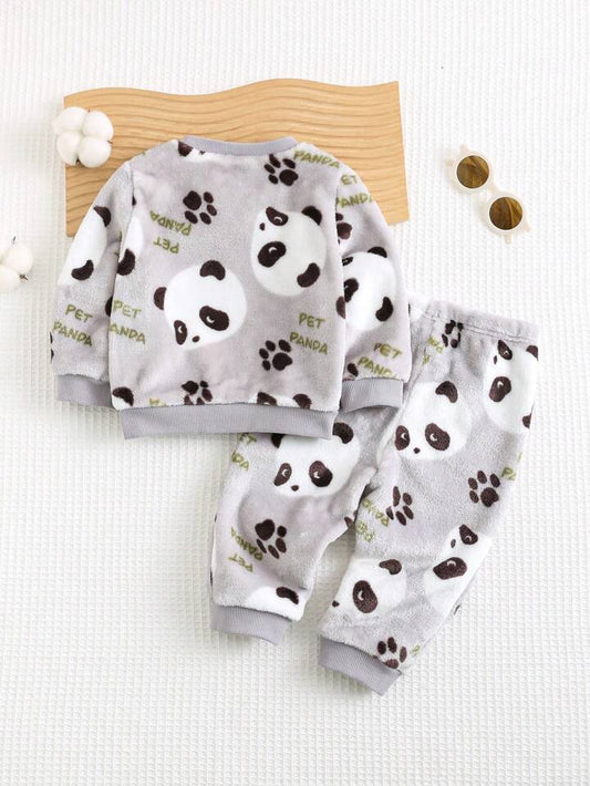 Cozy Pixies 2pcs/Set Baby Boy -Girl Panda Graphic Crew Neck Fleece Top And Jogger Pants Winter Outfit Pajama Set