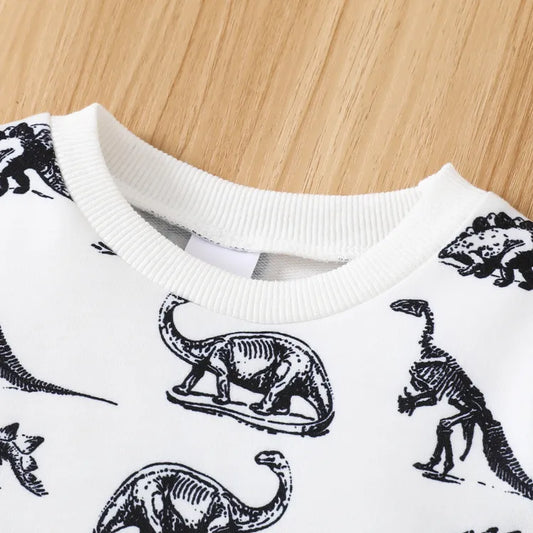 2pcs Baby Boy Allover Dinosaur Print Long-sleeve Sweatshirt and Sweatpants Set