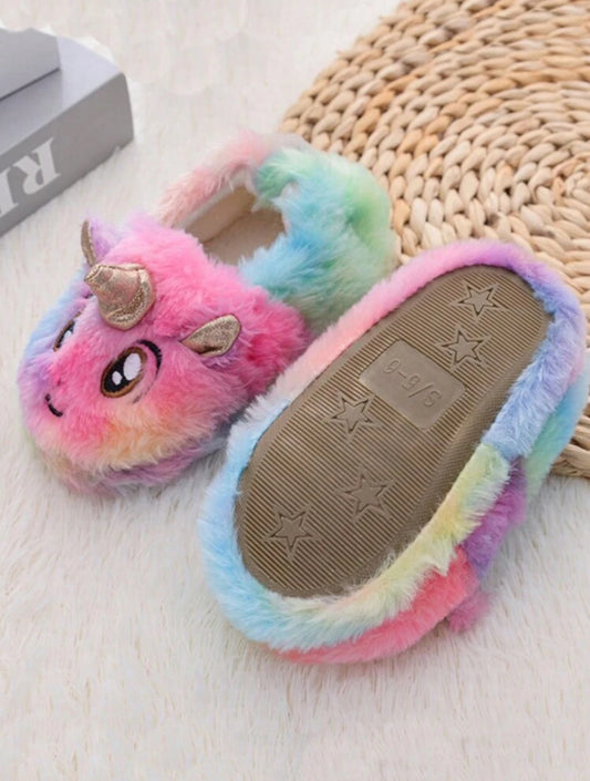 Kids Unicorn Cartoon Pattern Indoor Non-Slip Warm Silent Slippers, Suitable For Home Use