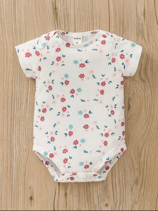 Cute Floral, Butterfly, Rainbow Print Casual Minimalist Baby Girl Short Sleeve Round Neck Top, Suitable For Summer