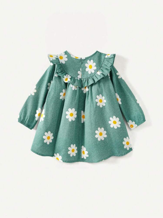 Cozy Pixies Baby Girl Chrysanthemum Digital Printed Ruffle Hem Long Sleeve Dress