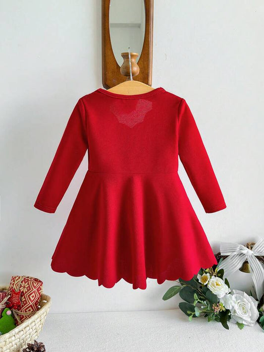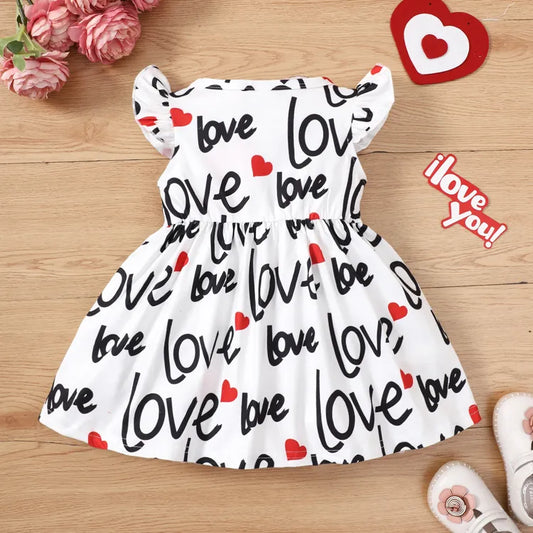 Baby Girl Allover Heart & Letter Print fancy Flutter-sleeve Bow Front Dress