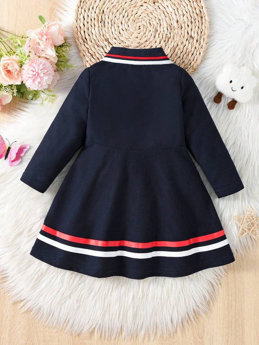 Cozy Pixies Baby Girl Sleeveless Waist Gathered Color Block Ruffle Collar Dress