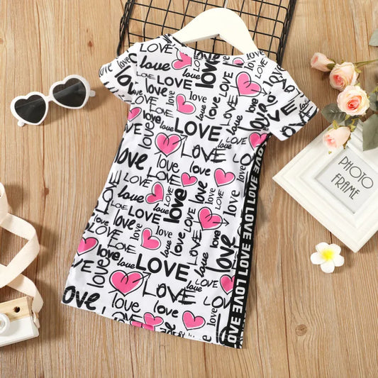 Baby Girl All Over Love Heart and Letter Print Short-sleeve Dress