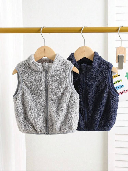 Baby Boys/Girls Fluffy Solid Color Vest & Jacket, Autumn/Winter