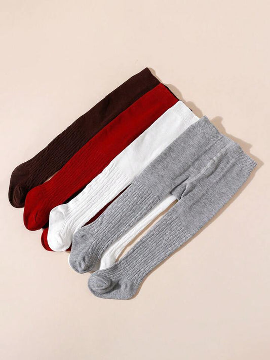 4pcs Baby Girls' Solid Color Leggings, Minimalist Crotch Tights