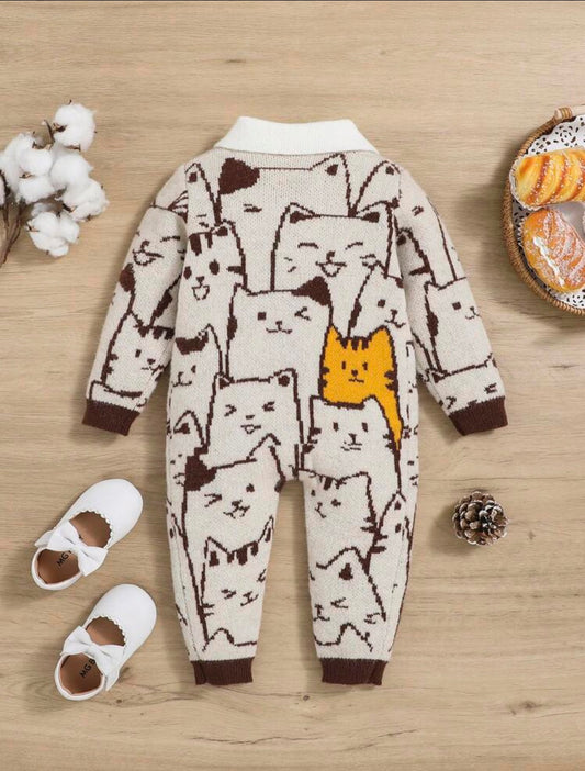 3 pc Baby Boy/Girl Gray Knitted Crew Neck Long Sleeve Footed Romper & Hat Set.