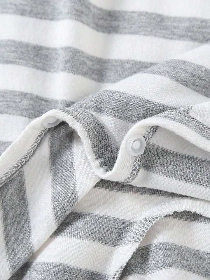 3 pc Baby Boy/Girl Gray Knitted Crew Neck Long Sleeve Footed Romper & Hat Set.
