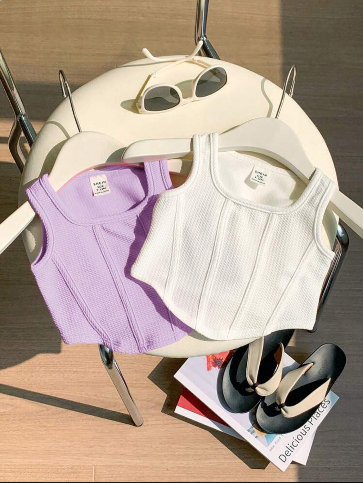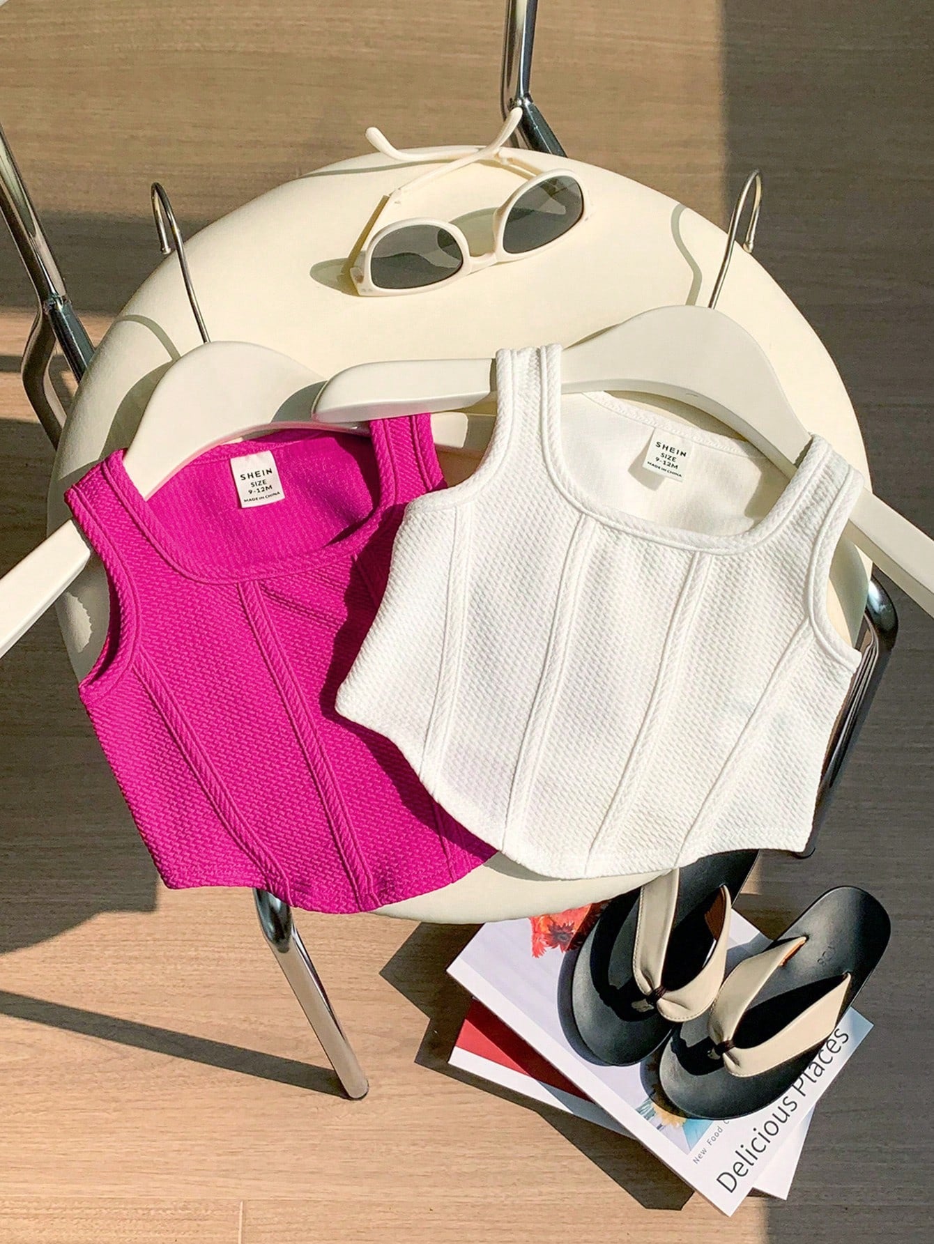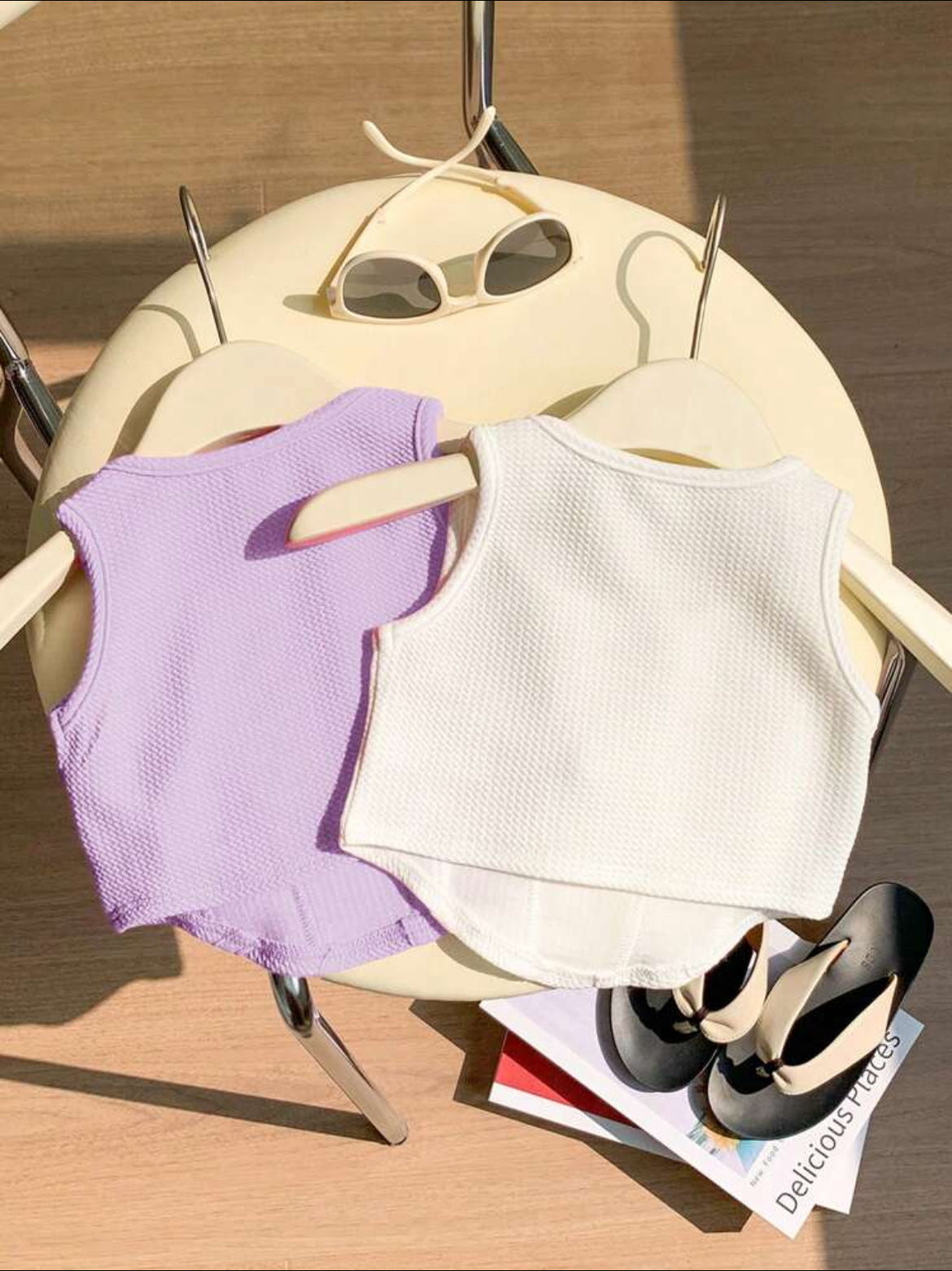 Solid Color Textured Sleeveless Tank Top ( set of 2 )