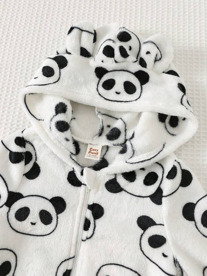 Panda Print Thermal Lined Hooded Long Sleeve Jumpsuit.