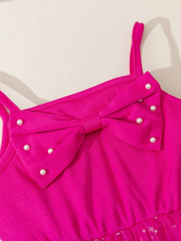 Young Girl Casual Striped Off-Shoulder Studded Bow A-Line Dress With Lining, Mesh Skirt.